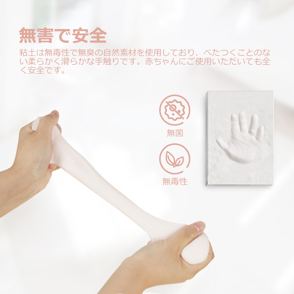 粘土に使用されている素材はエコフレンドリーな素材で、毒性がなく、臭いもありません。赤ちゃんにご使用いただいても全く安全です。べたつかず、粘土は滑らかで、柔らかい手触りをしています。そして、変色することもありません。フレーム自身も頑丈です。材料が松でつくられており、長期間使用しても、ゆがんだり、白カビが発生したりしません。