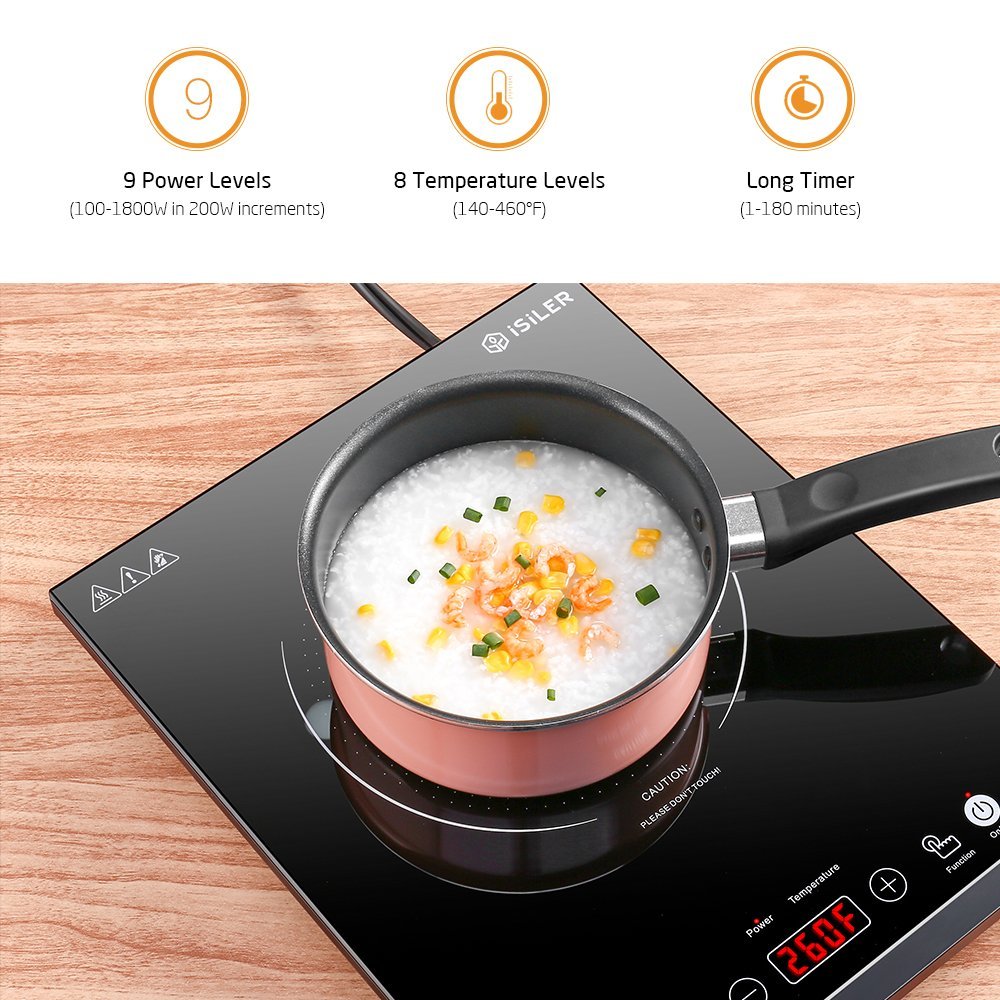 The iSiLER Portable Induction Cooktop is designed with user-friendly touch buttons for easy operation.
